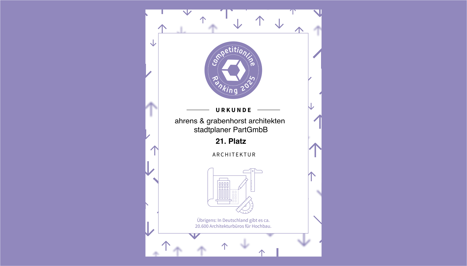 Im jährlich durch → Competitionline (das bekannte Präsentationsportal für Architekturwettbewerbe) aufgestellte Büro-Ranking für den deutschsprachigen Raum belegen wir einen erfreulichen 21. Platz für das Jahr 2025!